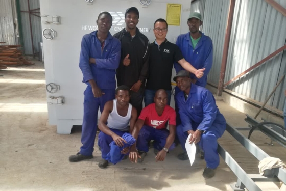 High frequency vacuum wood drying kiln installed in Africa Our exporter manager Mr.Carlos and Technician Mr.Lee have finished the high frequency vacuum wood drying kiln