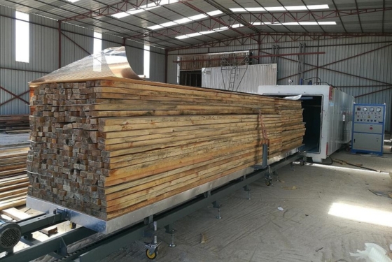 There is one set conventional wood drying chamber behind of our high frequency vacuum wood dry machine.